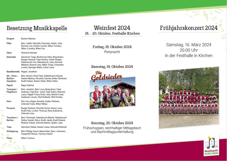 Die Musikkapelle Kirchen wünscht allen ein gutes neues Jahr 2024,
